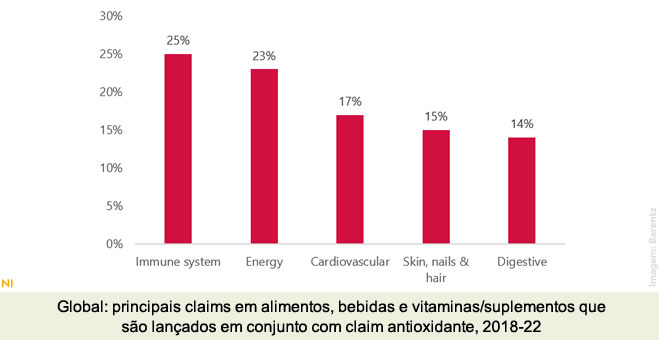 O mercado global de antioxidantes em alimentos, bebidas e suplementos apresenta amplas oportunidades, especialmente quando os benefícios antioxidantes são combinados com alegações reconhecidas, como suporte imunológico e saúde cardiovascular, cuja demanda é impulsionada por tendências como envelhecimento saudável, especialmente entre o público sênior.
