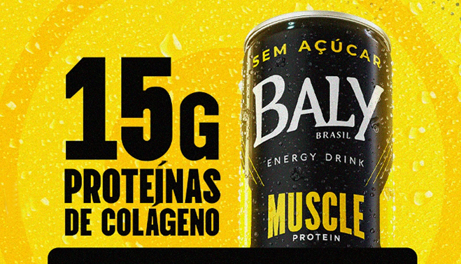 A indústria de bebidas Baly Brasil abala – mais uma vez – o mercado de energéticos com um novo lançamento exclusivo: Baly Muscle Protein, o primeiro energy drink proteico do mundo, unindo 65mg de cafeína natural a 15g de peptídeos bioativos Body Balance® (colágeno de alta performance), que aceleram a oxidação de gordura e, ao mesmo tempo, ativam a síntese proteica muscular, promovendo ganho de massa magra conforme ensaios clínicos de 12 semanas (Zdzieblik et al., 2015; Kirmse et al., 2019).
