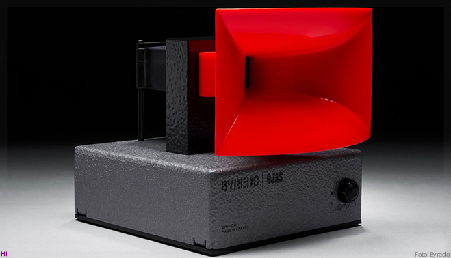 O difusor aplica a teoria do design do alto-falante ao perfume para distribuir o cheiro de forma eficiente. O gadget apresenta uma estrutura de alto-falante vermelha, anexada a uma base cinza com os logotipos da Byredo e da OJAS.