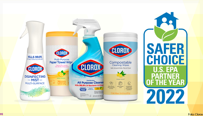 A Clorox Company foi nomeada vencedora do prêmio Safer Choice Partner of the Year de 2022 por sua notável conquista na fabricação de produtos com ingredientes que a Agência de Proteção Ambiental (EPA) designa como mais seguro para famílias, animais de estimação, locais de trabalho, comunidades e meio ambiente. Esta é a quinta vez que a empresa recebe este prêmio na categoria de prêmio de formulação/fabricação de produto.