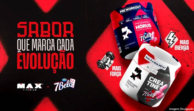 A Max Titanium e a 7Belo anunciam uma parceria que une o universo da suplementação esportiva ao apelo afetivo de um dos sabores mais conhecidos do mercado de confectionery brasileiro, com o lançamento de dois novos produtos: creatina e pré-treino desenvolvidos com perfil sensorial inspirado na bala de framboesa.