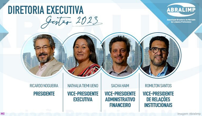 A diretoria executiva eleita para a gestão 2023 da Abralimp tomou posse em janeiro. A equipe é formada por Ricardo Nogueira (presidente), Nathalia Tiemi Ueno (vice-presidente executiva); Sacha Haim (vice-presidente administrativo-financeiro), e Romilton Anjos dos Santos (vice-presidente das relações institucionais).
