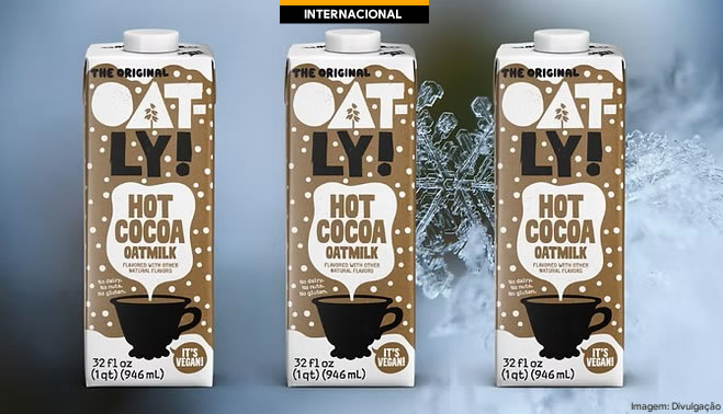A Oatly lançou nos Estados Unidos uma edição limitada de leite de aveia com chocolate quente, antecipando a temporada de festas natalinas.