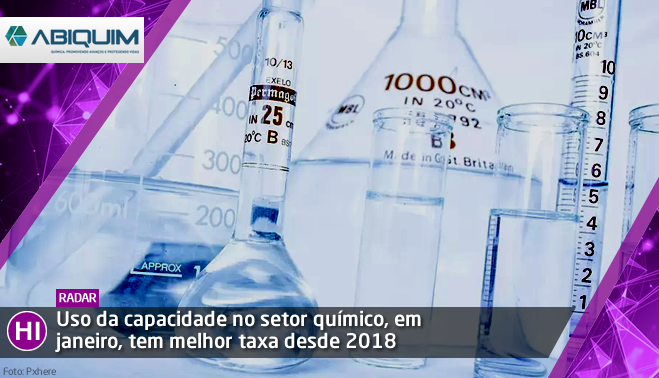 Com alguma melhora nos índices de produção e vendas internas de produtos químicos de uso industrial, o uso da capacidade instalada na indústria brasileira chegou a 82% em janeiro, a melhor taxa desde outubro de 2018 e a mais elevada para o primeiro mês do ano nos últimos quatro anos.